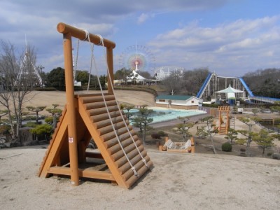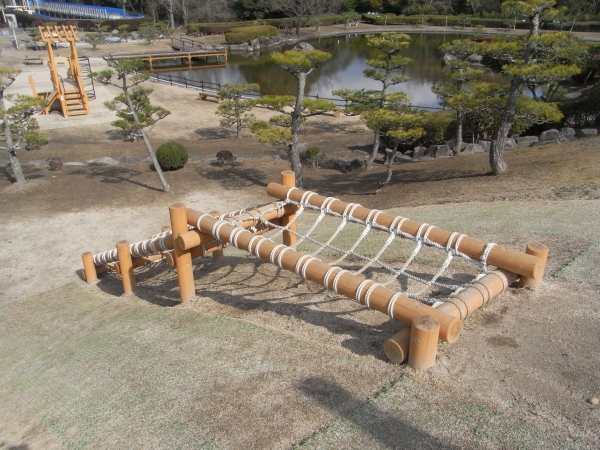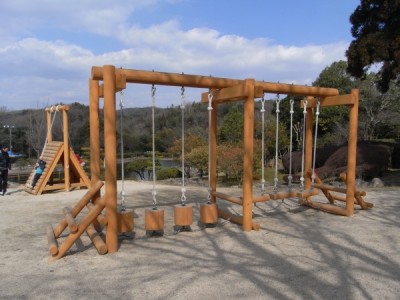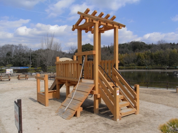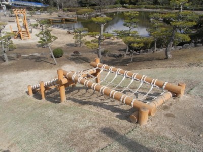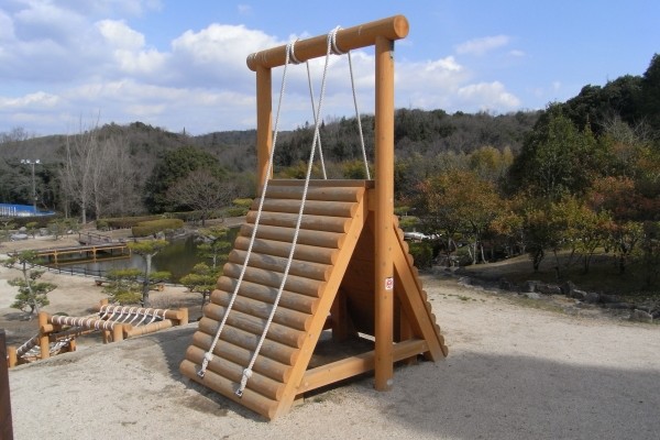 一部リニューアルでアスレチックパークが作られ、その中に当社の木製アスレチック遊具が採用されました。