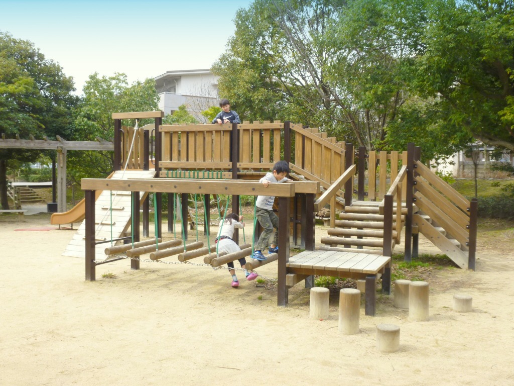 耐久性の高い亜鉛めっき処理したスチールの柱に、手が触れる場所や床板には木材を使用した、木の温もりとスチールの耐久性を組み合わせたハイブリッドな遊具です。