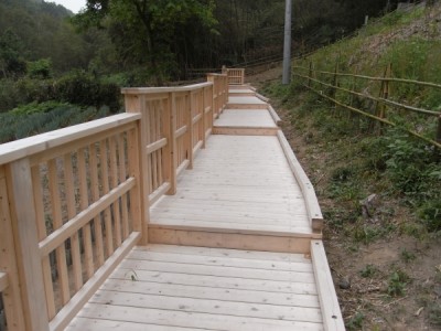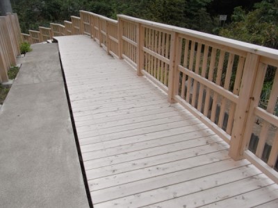 群馬県高崎市にある上野三碑。上野三碑は点在する三つの石碑(山上碑、多胡碑、金井沢碑)の総称で、飛鳥時代から奈良時代にかけて建てられ、国の特別史跡に指定されています。その上野三碑を広く知ってもらうための整備が行われ、当社では金井沢碑への散策路に木道を整備しました。