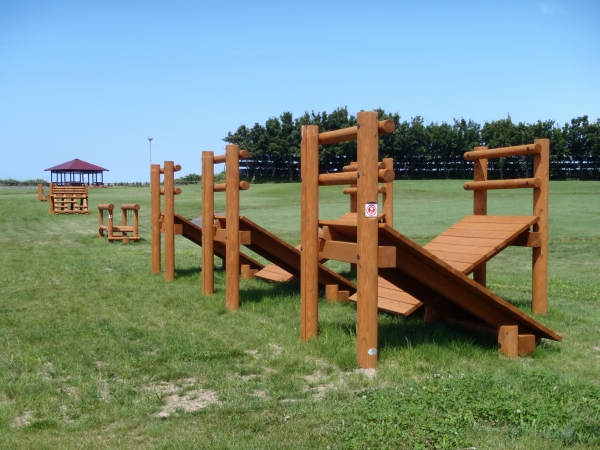 海のプールがある元和台海浜公園の緑地広場にアスレチック遊具を納入しました。