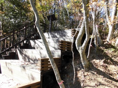 展望デッキは斜面地に沿うように階段状になっています。