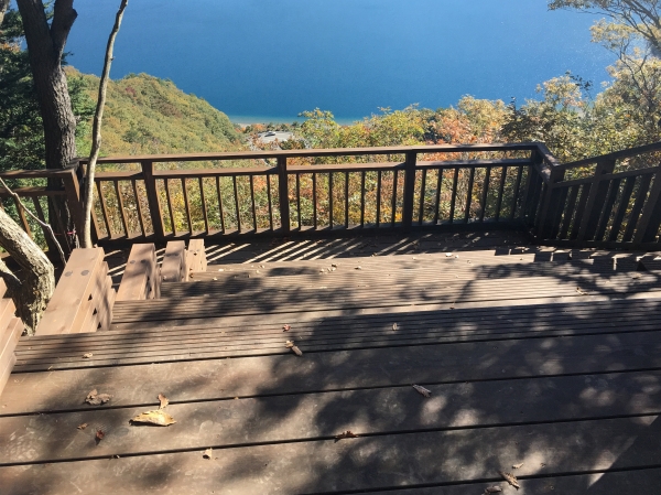 展望デッキは斜面地に沿うように階段状になっています。