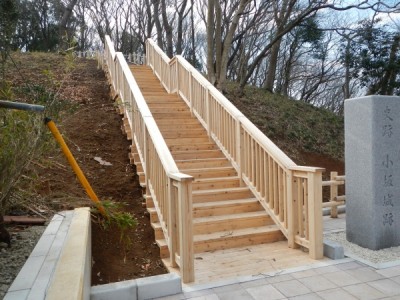公園施設/エクステリア Park / Exterior TOP公園施設/エクステリア施工実績柵・門扉小坂城跡公園(茨城県) 小坂城跡公園(茨城県) 印刷 茨城県牛久市にある小坂城跡が公園として整備されました。 公園内を散策することで空堀や土塁などの遺構を確認することができます。 その中に当社の木製施設を納入させていただきました。 駐車場から入る階段や小坂城跡の説明をするサインなど来訪者の利便性を向上させることに一役買っています。 2012年施工 【担当営業所】営業本部景観エクステリア部(東京) TEL03-3254-0832 カテゴリ 柵・門扉 ベンチ サイン デッキ 関連画像 サイン 木製階段 解説サイン 指導標 ベンチ 木柵