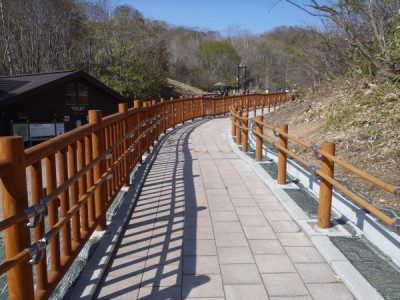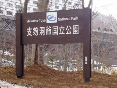 この支笏洞爺国立公園のエントランスサインを含めたサイン類、柵など様々な施設を整備しています。