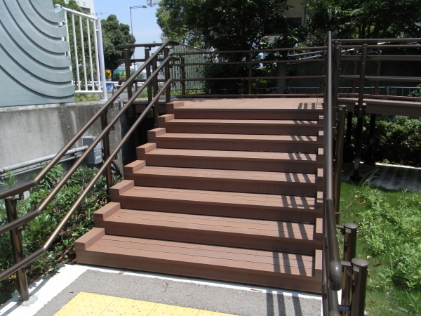 公園施設/エクステリア Park / Exterior TOP公園施設/エクステリア施工実績合成木材有明北緑道公園(東京都) 有明北緑道公園(東京都) 印刷 東京都お台場の有明北緑道公園が整備されました。 海のそばで潮風を感じたり、釣りを楽しむ人がいたりと様々な楽しみ方をする人たちがいます。 当社では道路側から公園にアクセスする段差を解消するためにバリアフリーに配慮したスロープデッキを整備しました。 スロープデッキの床板には合成木材Rexy-Wood(リクシイウッド)を使用しています。 2016年施工 【担当営業所】営業本部景観エクステリア部(東京) TEL03-3254-0832 カテゴリ 合成木材 デッキ 関連画像 道路との接続 階段部 手摺 踊り場 スロープ勾配1:20 支柱、根太(鋼製)