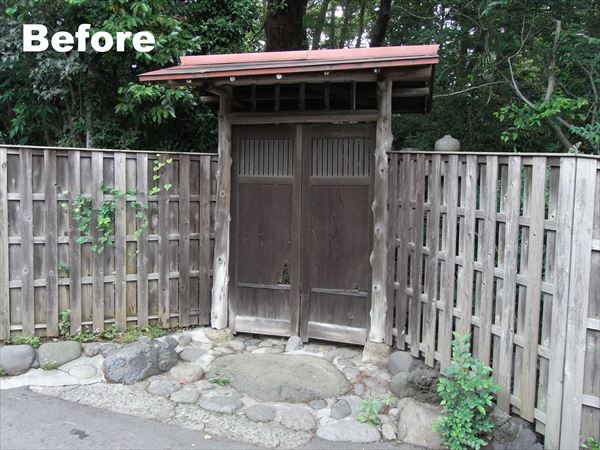 他にも既存の門扉に再塗装と補強を行うことで美しく蘇りました。