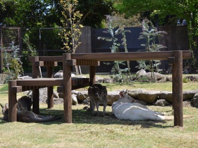 カンガルーの展示場内を歩いて見学できるように整備されており、テーブルの下で休むカンガルー達を間近に見学できます。