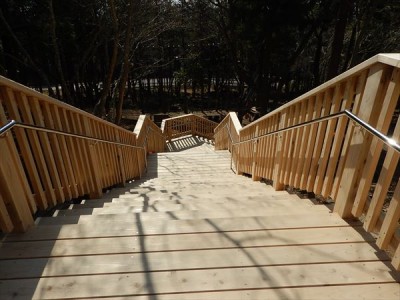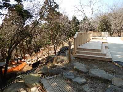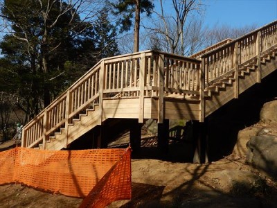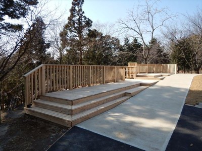 公園施設/エクステリア Park / Exterior TOP公園施設/エクステリア施工実績デッキ筑波山おもてなし館(茨城県) 筑波山おもてなし館(茨城県) 印刷 茨城県つくば市の筑波山麓に「筑波山おもてなし館」が整備され、その周辺施設として木製デッキと階段を設置しました。 崖の下から階段で上がり、周囲を一望できるデッキにアクセスできます。デッキに隣接して観光施設のおもてなし館があります。 階段の床と柵などの木部にはペンタキュアECO30保存処理した茨城県産杉材を使用しています。 2017年施工 【担当営業所】営業本部景観エクステリア部(東京) TEL03-3254-0832 カテゴリ デッキ 関連画像 階段の踊り場 階段 見下ろした全景 転落防止柵と手すり 園路の傾斜に合わせたデッキ 崖上のデッキ