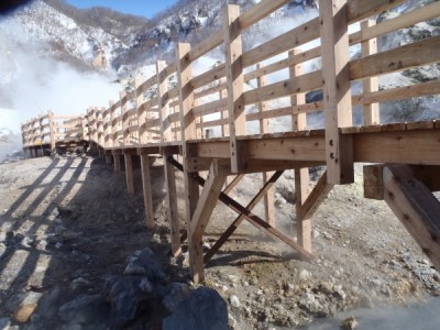 公園施設/エクステリア Park / Exterior TOP公園施設/エクステリア施工実績サイン登別地獄谷(北海道) 登別地獄谷(北海道) 印刷 登別地獄谷は約1万年前に、活火山が噴火した爆裂火口跡で、登別温泉街の観光名所です。登別温泉の源泉にもなっており、硫黄の香りが漂っています。この地獄谷を見るための木道を納入しました。 2014年には入口サインをはじめ、多言語化に配慮した木製サインを納入しています。 2018年施工 【担当営業所】北海道営業所 TEL 0143-27-1264 カテゴリ サイン デッキ 関連画像 歩行部 横から 曲がり部 ゴール 入口サイン 指導標