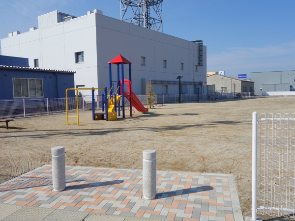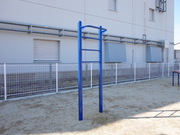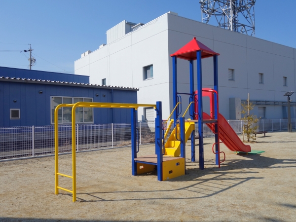 土地区画整理事業による分譲住宅地にできた公園に鋼製遊具と健康器具を納入しました。赤い屋根がシンボリックな遊具です。本体はスチール亜鉛メッキ処理品、床板には合成木材Rexy-woodを使用しています。