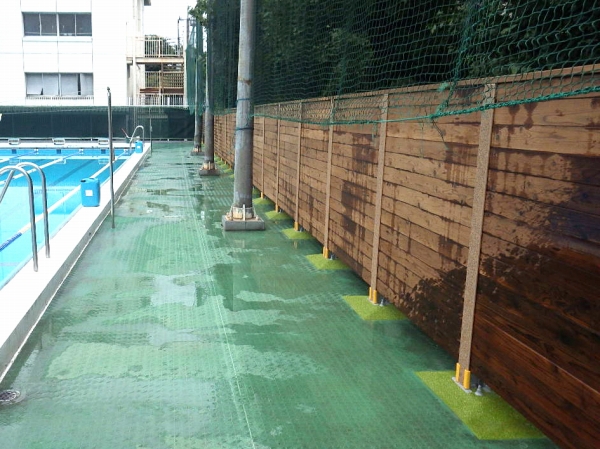 公園施設/エクステリア Park / Exterior TOP公園施設/エクステリア施工実績板塀都立高校の木塀(東京都) 都立高校の木塀(東京都) 印刷 東京都モデル工事に掲げられた都立高校3校の木塀の木工事を行ないました。プール周りのコンクリート塀を木塀にリニューアルしています。国立高校、井草高校、東大和高校の3校とも構造形式が異なります。 国立高校・・・杉板縦張り方式 井草高校・・・鋼材枠に杉板材を落とし込む横張方式 東大和高校・・・杉板千鳥張り方式。 2019年施工 【担当営業所】営業本部景観エクステリア部 TEL 03-3254-0832 カテゴリ 板塀 関連画像 東大和高校 東大和高校(外側) 井草高校 井草高校 国立高校 国立高校