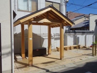 公園施設/エクステリア Park / Exterior TOP公園施設/エクステリア施工実績柵・門扉乾隆・桑の木広場(京都府) 乾隆・桑の木広場(京都府) 印刷 「乾隆・桑の木広場」は旧寺之内交番所跡地のスペースに、地域コミュニティの場として整備されました。約26平米ほどのポケットパークは、子どもから高齢者まで利用できる憩いの空間です。当社ではこの整備に京都市の木材を使った東屋、ベンチ、木柵、標柱を納品しました。 2019年施工 【担当営業所】大阪営業所 TEL 072-439-4413 カテゴリ 柵・門扉 和風 ベンチ サイン 東屋 パーゴラ 関連画像 全景 東屋 木柵 標柱 ベンチ みやこ杣木を使用