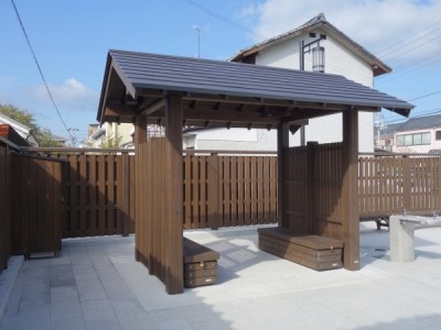 公園施設/エクステリア Park / Exterior TOP公園施設/エクステリア施工実績板塀灘町ポケットパーク(愛媛県) 灘町ポケットパーク(愛媛県) 印刷 「灘町ポケットパーク」は伊予市灘町に新しく整備された小規模公園です。地域住民の交流スペースとしてだけでなく、地域防災のスペースとして使うことも想定されています。この整備にあたり、和風東屋、板塀、和風縁台、収納ベンチを納品しました。和風東屋はテントがかけられ避難所として使える仕様になっています。木の風合いが和のまちなみになじみます。 2019年施工 【担当営業所】広島営業所 TEL 0829-20-1567 カテゴリ 板塀 柵・門扉 和風 防災 ベンチ サイン 東屋 関連画像 和風東屋(防災仕様) 収納ベンチ 板塀(掲示板付き) 和風縁台 車止め 板塀とベンチ