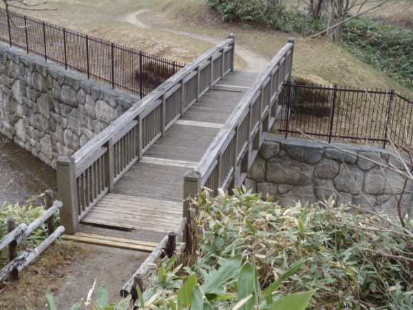 ・野幌森林公園(北海道札幌市)既存の集成材桁は防腐剤を塗布して再利用。床板、高欄を交換。