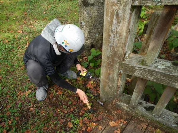 公園施設/エクステリア Park / Exterior TOP公園施設/エクステリア施工実績木橋ほたるみ橋公園(山梨県) ほたるみ橋公園(山梨県) 印刷 山梨県南アルプス市のほたるみ橋公園内の木橋2橋の改修を行ないました。劣化している既存の木橋について打診、揺診、目視による点検に加え、レジストグラフ、ファコップによる精密点検を行い、改修設計を行なっています。H鋼桁は再利用し、木部のみ改修いたしました。 2019年施工 【担当営業所】営業本部景観エクステリア部 TEL 03-3254-0832 カテゴリ 木橋 関連画像 精密点検レジストグラフ 精密点検ファコップ 上流橋(改修前) 上流橋(改修後) 下流橋(改修前) 下流橋(改修後)