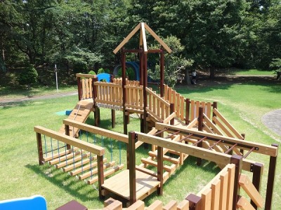 公園施設/エクステリア Park / Exterior TOP公園施設/エクステリア施工実績東屋金川の森公園(山梨県) 金川の森公園(山梨県) 印刷 金川の森は6つの森から成り立つ、約36haの広さの大きな森林公園です。その中のスポーツ広場の遊具を当社のテツモク遊具でリニューアルしました。 柱に鋼材を使用し、さらに耐久性を高め、木の温もりを活かした遊具が緑豊かな公園になじみます。 さらに2020年には、劣化していた休憩所2か所を機関車と駅舎をイメージした休憩所にリニューアルしました。 2019施工(遊具)、2020年施工(東屋) 【担当営業所】営業本部景観エクステリア部 TEL 03-3254-0832 カテゴリ 東屋 遊具 関連画像 イメージパース 全景 柱は鋼製 高さ2mからのすべり台 休憩所(機関車) 休憩所(駅舎)