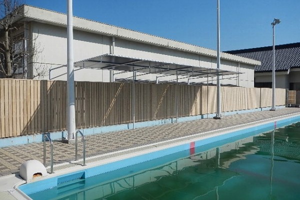 東京都都立高校2校のプール周りのコンクリート塀を木塀にリニューアルしました。