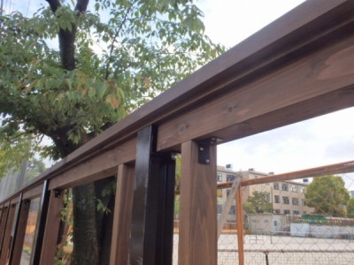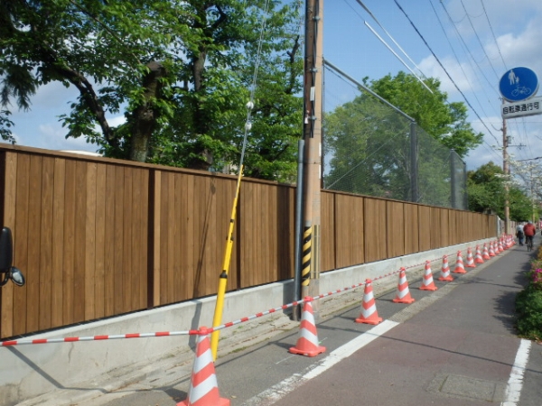 公園施設/エクステリア Park / Exterior TOP公園施設/エクステリア施工実績板塀京都市立二条中学校(京都府) 京都市立二条中学校(京都府) 印刷 二条中学校(京都府) 二条城の向かいにある二条中学校のブロック塀を木塀にリニューアルしました。 木塀の構造は東京都の標準図に準拠した構造になっています。木材はまちなみにあうようにこげ茶色に塗装しています。 2020年施工 【担当営業所】大阪営業所 TEL 072-439-4413 カテゴリ 板塀 関連画像 イメージパース 施工後 全景 通り向こうが二条城 構内側 施工中(柱は鋼材)