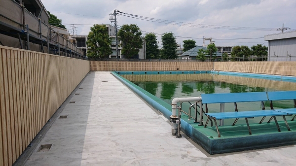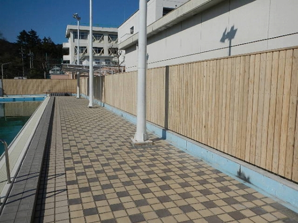 東京都都立高校2校のプール周りのコンクリート塀を木塀にリニューアルしました。