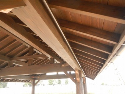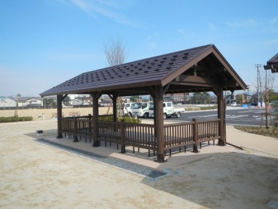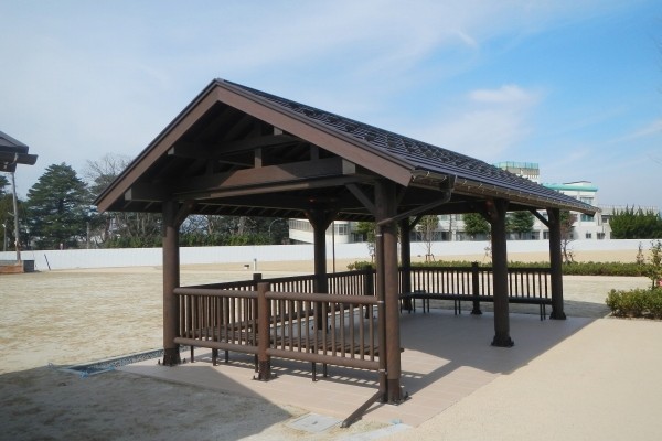 新潟県新発田市の県立新発田病院の跡地に防災機能を持った公園として整備されました。周囲に日本100名城の一つ、新発田城があり、公園の雰囲気も和の雰囲気をもったものになっています。この公園に当社の三種の東屋を納入いたしました。