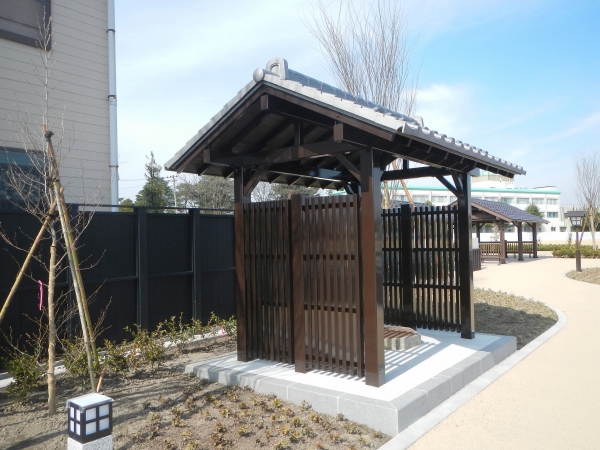 新潟県新発田市の県立新発田病院の跡地に防災機能を持った公園として整備されました。周囲に日本100名城の一つ、新発田城があり、公園の雰囲気も和の雰囲気をもったものになっています。この公園に当社の三種の東屋を納入いたしました。