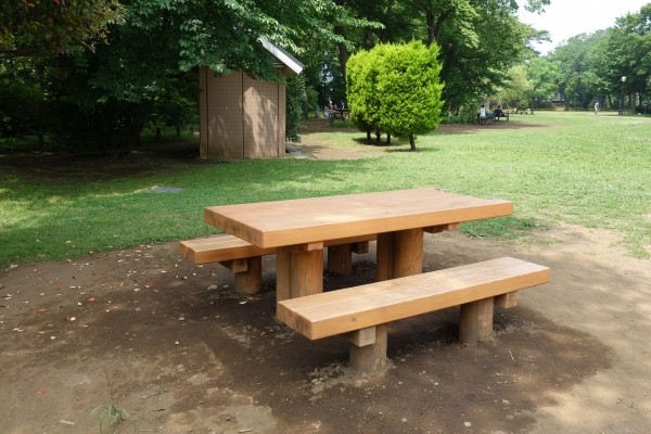 杉並区様ではその一部を木材利用の一環として、公園の野外卓やいこいの森の看板を整備しており、当社で納入いたしました。