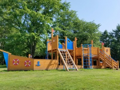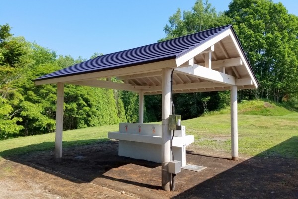 北海道胆振東部地震にて被害を受けたときわ公園内のキャンプ場の炊事場、BBQコーナーの上屋、船の遊具のリニューアルを当社で行いました。
