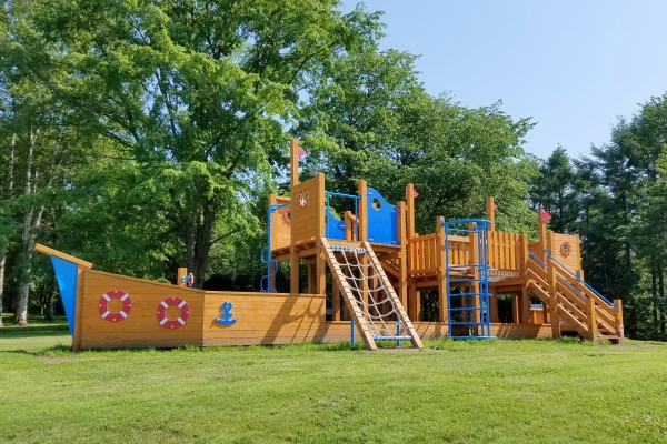 北海道胆振東部地震にて被害を受けたときわ公園内のキャンプ場の炊事場、BBQコーナーの上屋、船の遊具のリニューアルを当社で行いました。