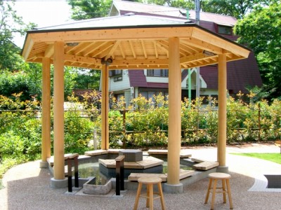 温泉地などで、温泉を手軽に楽しめる施設として足湯があります。当社で足湯の上屋として東屋を納入した事例をご紹介します。上屋をかけることによって、人々がゆっくりと足湯を楽しむことができます。