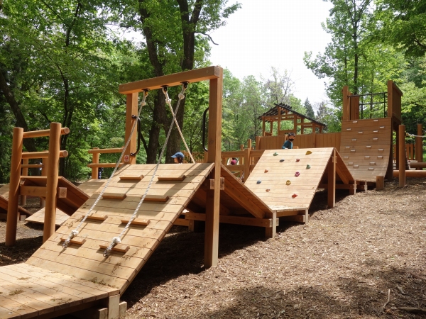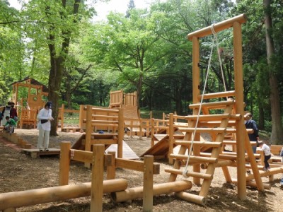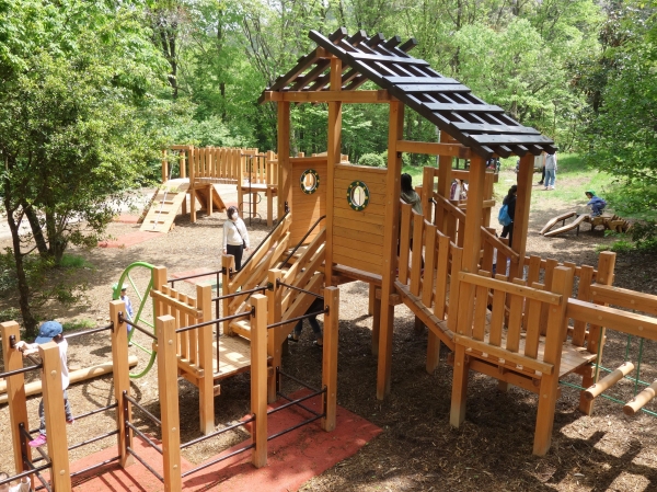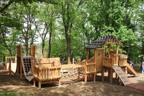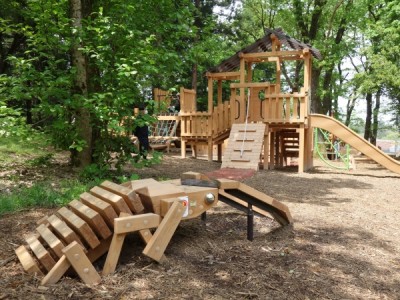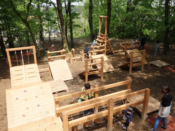 森の木々の中を遊具で遊ぶというコンセプトの木製遊具を新潟県三条市トリムの森に納入しました。児童用遊具は斜面を活かしてアスレチック的な遊具で周回、昇り降りを楽しみながら、ツリーハウス風のシンボル遊具を目指します。他にも幼児用の木製コンビ遊具、クワガタの造形遊具を納入しました。幅広い年齢の子ども達が遊べます。