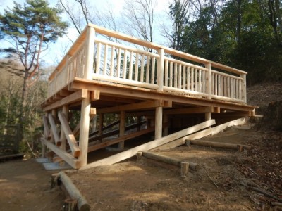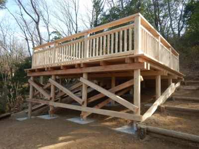 公園施設/エクステリア Park / Exterior TOP公園施設/エクステリア施工実績デッキ東大阪市立野外活動センター(大阪府) 東大阪市立野外活動センター(大阪府) 印刷 大阪府東大阪市にある東大阪市立野外活動センター「自由の森なるかわ(愛称)」はクヌギやコナラの広葉樹林が広がる森林浴が楽しめるスポットです。キャンプやバンガロー宿泊、日帰りBBQなどが楽しめる施設となっています。このたび、木製テントサイトデッキの一つを当社で改修しました。傾斜地を利用したデッキで眺望も楽しめます。 2021年施工 【担当営業所】大阪営業所 TEL 072-439-4413 カテゴリ デッキ 関連画像 傾斜地に設置 改修前 施工中 改修後 眺望が楽しめます 下部構造