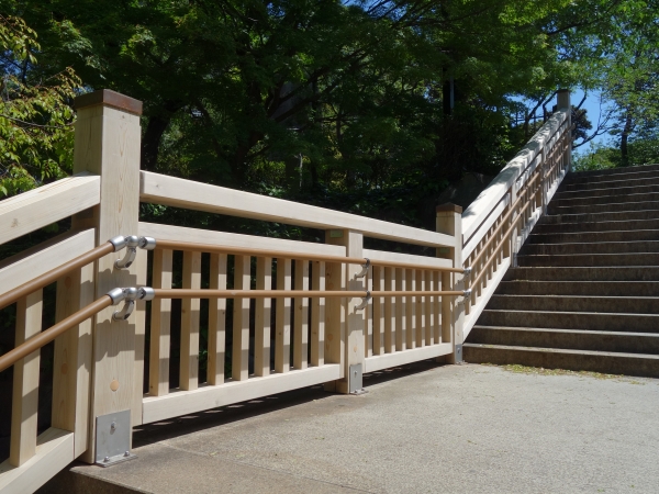 公園施設/エクステリア Park / Exterior TOP公園施設/エクステリア施工実績柵・門扉飛鳥山公園(東京都) 飛鳥山公園(東京都) 印刷 東京都北区の桜の名所である飛鳥山公園。飛鳥山公園内には、新紙幣にもなる渋沢栄一の旧邸の遺構などもあり、公園の整備が進められています。当社は飛鳥山公園の舞台(木製デッキ)、木柵の改修を行いました。舞台(木製デッキ)は、柱等の主要構造部に防錆処理したスチールを使用し、耐久性をより高めています。全面改修にあたっては既存のデッキや木柵を計測し、現地に合わせた製品を納めています。 2021年施工 【担当営業所】営業本部景観エクステリア部 TEL 03-3254-0832 カテゴリ 柵・門扉 デッキ 関連画像 全景(舞台は予約制) 階段柵 舞台-改修前 舞台-改修後 柵-改修前 柵-改修後