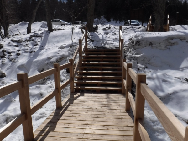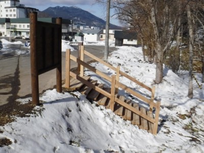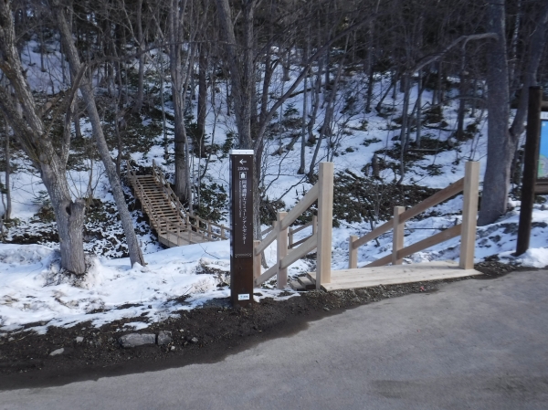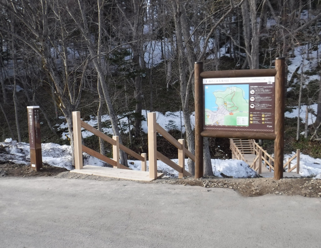 公園施設/エクステリア Park / Exterior TOP公園施設/エクステリア施工実績サイン阿寒摩周国立公園「森のこみち」(北海道) 阿寒摩周国立公園「森のこみち」(北海道) 印刷 阿寒湖畔第一駐車場とボッケ遊歩道を繋ぐ散策路「森のこみち」の駐車場からアクセスする階段、木道と、案内サインを納入しました。 サインのデザインは「阿寒摩周国立公園トレイル標識整備及び維持管理に関するガイドライン」に準拠した形になっています。 2021年施工 【担当営業所】北海道営業所 TEL 0143-27-1264 カテゴリ サイン デッキ 関連画像 駐車場入り口から サイン 階段 階段デッキ 標柱 サイン(滝口線)