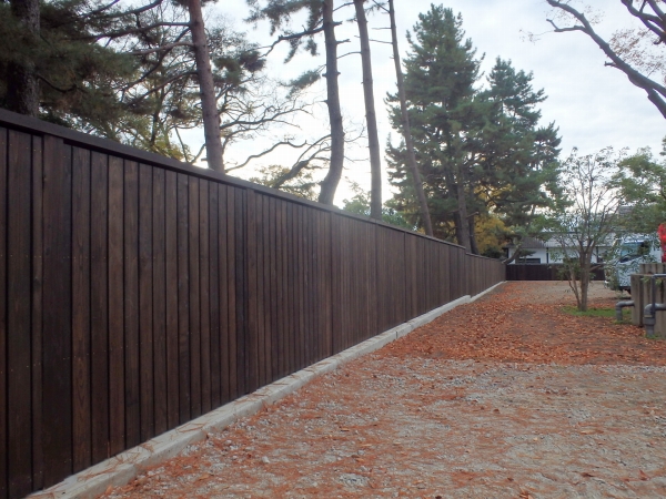 公園施設/エクステリア Park / Exterior TOP公園施設/エクステリア施工実績板塀京都御苑(京都府) 京都御苑(京都府) 印刷 国民公園の京都御苑内主馬寮(立入禁止区域)の外周に木塀(木製板塀)を納入しました。 中が見えない目隠し塀の構造となっています。 木材の風合いが京都御苑の景観なじみます。 2014年には閑院宮邸跡の木塀改修も行っています。 2021年施工 【担当営業所】大阪営業所 TEL 072-439-4413 カテゴリ 板塀 関連画像 全景 改修前 改修イメージパース 改修後 内側から 閑院宮邸跡(7年経過)