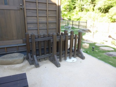 今月、ピックアップ商品として、ご紹介するのは和風庭園などの人止めに使用できる据置式の人止柵です。