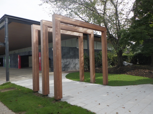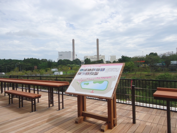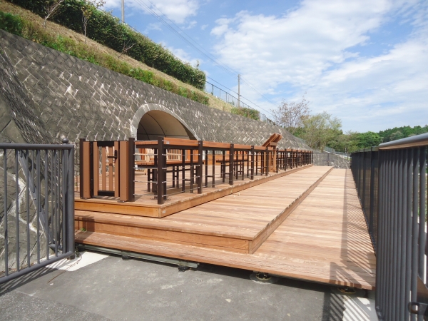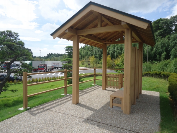 東関東自動車道下り線の酒々井PAのリニューアルにあたり、運転手や同乗者の方々がリラックスできる広場が整備されました。酒々井の由来になった酒の井伝説による井戸のモニュメントやゲートやベンチ、高台には和風東屋を納入しました。トンネルをくぐると眺望が楽しめる「見晴らしのくつろぎデッキ」があり、こちらのデッキ、ベンチ、サインを納入しました。桜の季節には様々な桜が楽しめます。