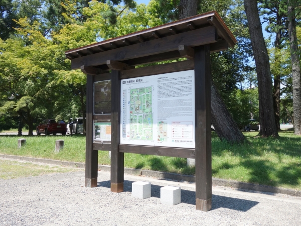 京都御苑は京都御所、京都大宮・京都仙洞御所、京都迎賓館を含む約100haの国民公園です。この広大な公園の案内サインの全面改修を行ないました。案内サインは9つの外郭御門を含め11箇所に設置。デザインも和の空間になじむ銅板屋根付きの和風デザインとなっています。