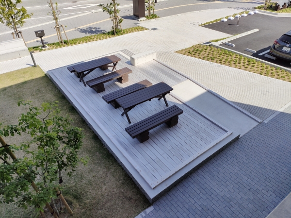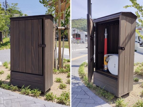 また、玄関口となる駅前の複合施設ゆるりあん周辺にデッキ、消火栓ボックスを納入しました。