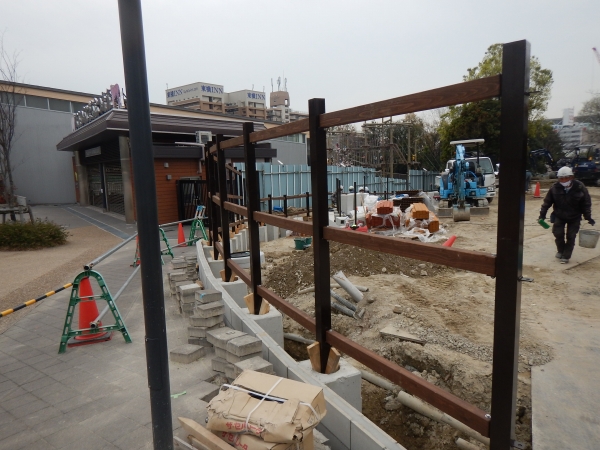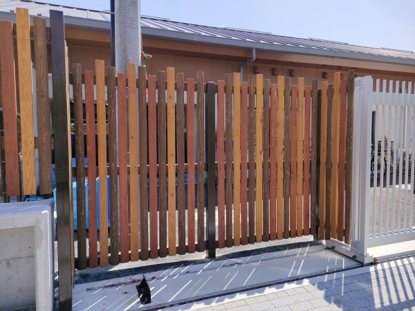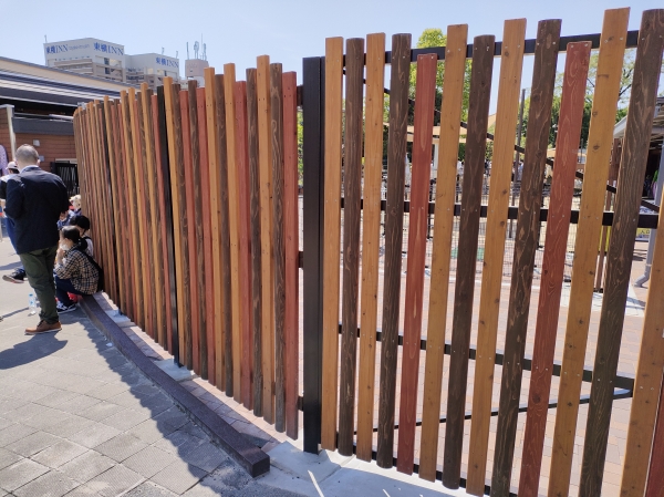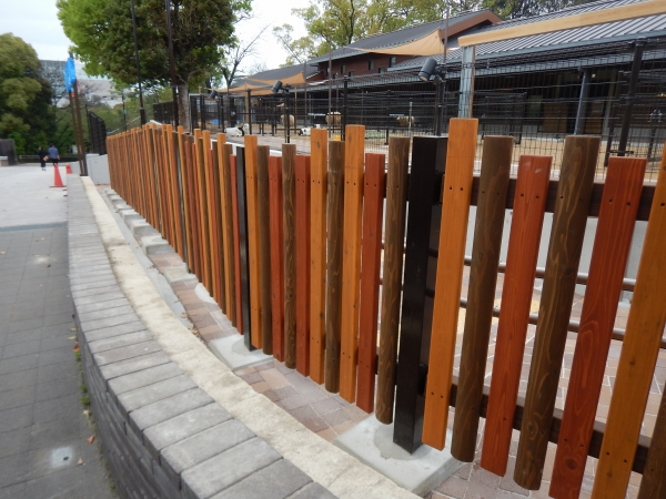 公園施設/エクステリア Park / Exterior TOP公園施設/エクステリア施工実績板塀天王寺動物園(大阪府) 天王寺動物園(大阪府) 印刷 大阪市天王寺動物園に、新エリア「ふれんどしっぷガーデン」がオープンしました。動物とふれあえる施設です。 このエリアの外周柵に当社で木塀を納入しました。柱には鋼材を使用。格子はランダムな高さのデザインです。 人々が集まる天王寺公園のエントランスエリア「てんしば」との境界の柵にもなっています。 2022年施工 【担当営業所】大阪営業所 TEL 072-439-4413 カテゴリ 板塀 関連画像 正面 門扉前 全景 ふれんどしっぷガーデン前 施工中(柱は鋼材) 施工後