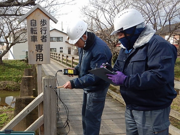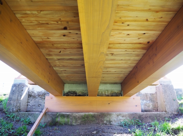 公園施設/エクステリア Park / Exterior TOP公園施設/エクステリア施工実績木橋堂桁橋(島根県) 堂桁橋(島根県) 印刷 島根県松江市の玉湯川にかかる木橋です。玉造温泉街からは少し離れた位置にありますが、人道橋として、人々の生活道としても使われています。既存の木橋の精密点検を実施し、設計、改修を行いました。 精密点検は、木橋技術協会の点検マニュアルにしたがい、穿孔抵抗測定器「レジストグラフ」、伝播速度試験器「ファコップ」を使った点検を行っています。 幅員1.76m×橋長23.96m 2022年施工 【担当営業所】広島営業所 TEL 0829-20-1567 カテゴリ 木橋 関連画像 全景 下から(桁は木製) 精密点検レジストグラフ 精密点検ファコップ 堂桁橋(改修前) 堂桁橋(改修後)