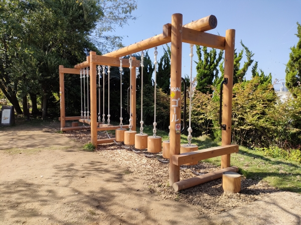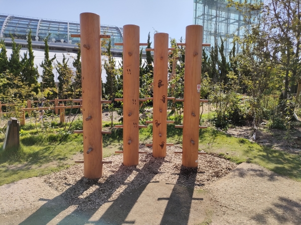 福島県いわき市小名浜にある環境水族館「アクアマリンふくしま」の新エリア「えっぐの森」がリニューアルオープンしました。「えっぐの森」はテンやモモンガ、リスなどが見られるエリアです。今回、その動きモチーフにした木製アスレチック遊具を7ポイント納入しました。アスレチック遊具はスタッフの方に動物の足跡をつけてもらうなどのアレンジをしてもらっています。動物を見て、その動きを楽しむという新しい遊具の楽しみ方が体感できます。