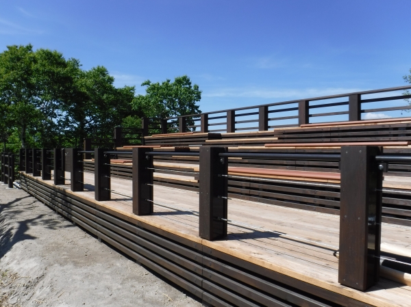 公園施設/エクステリア Park / Exterior TOP公園施設/エクステリア施工実績デッキ裏摩周展望台(北海道) 裏摩周展望台(北海道) 印刷 摩周湖の北東に位置する展望台です。摩周湖にある3つの展望台のうち、一番霧の発生が少ないといわれており、摩周岳が良く見えます。この裏摩周展望台に展望デッキを納入しました。木部はカラマツ材を使用し、主要構造部はスチールに木化粧としています。座面には合成木材を使ったハイブリッド構造の展望デッキです。 2021年施工 【担当営業所】北海道営業所 TEL 0143-27-1264 カテゴリ デッキ 関連画像 イメージ図 全景 ベンチは合成木材 展望台下から サイン 摩周岳を眺める