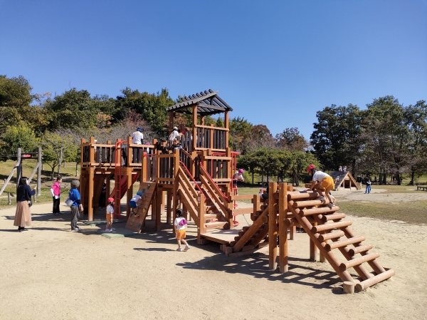 京都府精華町にあるけいはんな記念公園。この遊具広場の木製遊具をリニューアル設置しました。