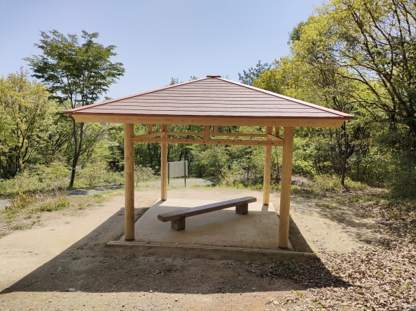 熊本市にある立田山憩いの森。森林公園の役割を持つ保安林整備として、森林環境譲与税を活用し、木製施設の再整備が行なわれました。当社では北展望所の東屋と指導標を納入しました。