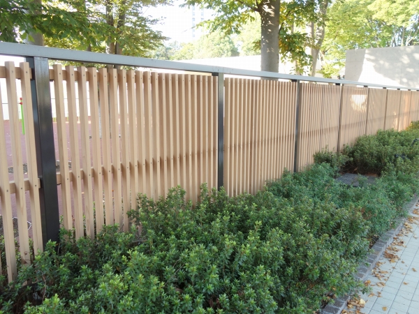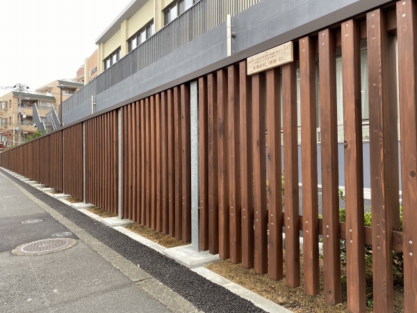 東京都が策定した「国産木材を活用した塀等設置のガイドライン」の標準図タイプの木塀の納入実績です。東京都内の学校の外周の木塀を改修しました。