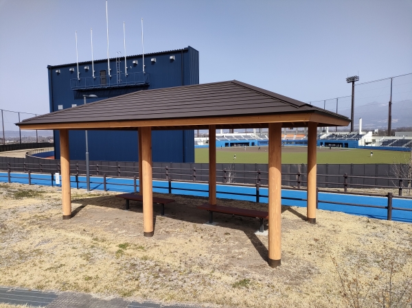 長野県佐久市にある佐久総合運動公園は野球場、陸上競技場、マレットゴルフ場、クロスカントリーコースが整備された運動公園です。この運動公園に東屋を納入しました。