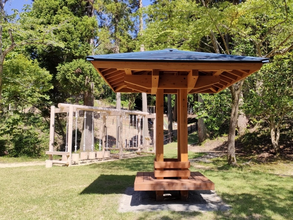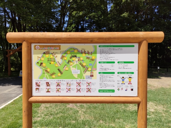 石川県森林公園は、金沢から車で30分に位置する広大な森林をそのまま生かした自然を楽しめる公園です。この公園はバーベキュー広場や見晴らし台など、様々なリニューアルが進んでおり、そのうちフィールドアスレチックコースに、当社の木製アスレチック遊具20点を納入しました。アスレチック遊具は石川県内の名所20箇所をモチーフにしたものとなっており、県内外の人が遊びながら観光地を知ることができるようになっています。遊具のほかに総合サインと個別サイン、入口のゲート、途中で休憩できる東屋やベンチも納入しました。