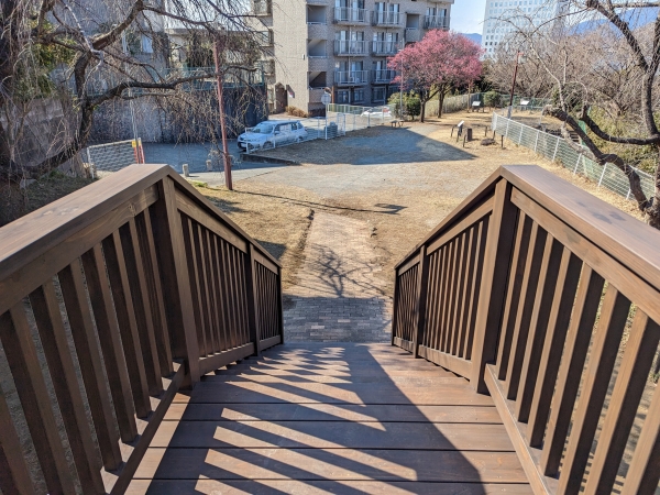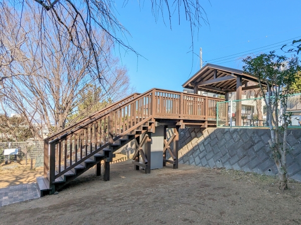 公園施設/エクステリア Park / Exterior TOP公園施設/エクステリア施工実績デッキ国分八景公園(神奈川県) 国分八景公園(神奈川県) 印刷 海老名市にある国分八景公園。台地の一番上にあることから見晴らしが良い公園です。その公園名は近くの龍峰寺に元禄年間に滞在した鉄牛和尚がこの付近から見える景色を「龍峰寺八景詩」という漢詩に残したことから名づけられました。この公園内の東屋付きの階段デッキを全面改修しました。東屋は切妻タイプに変更しています。階段を登った東屋からは眺めを楽しむことができます。 2022年施工 【担当営業所】営業本部景観エクステリア部 TEL 03-3254-0832 カテゴリ デッキ 関連画像 階段部(改修前) 階段部(改修後) 東屋部(改修前) 東屋部(改修後) 階段 切妻東屋