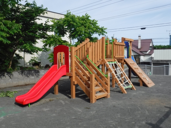蘭越町にあるなかよし公園に当社で木製遊具を納入しました。遊具はコンビ遊具と二連ぶらんこの二種類です。木部は杉材に木材保存剤ペンタキュアECO30を加圧注入処理して耐久性を確保しています。