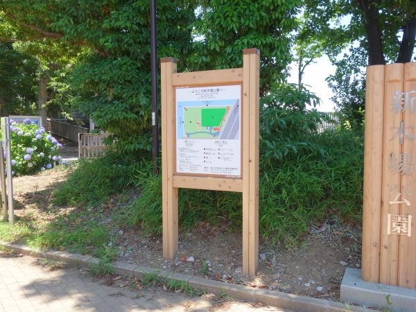 東京都江東区にある新木場公園。この公園のバーベキュー広場の木製のエントランスサインと案内板を当社で納入しました。あわせて近くに設置されたトイレの木製目隠し壁も納入しました。